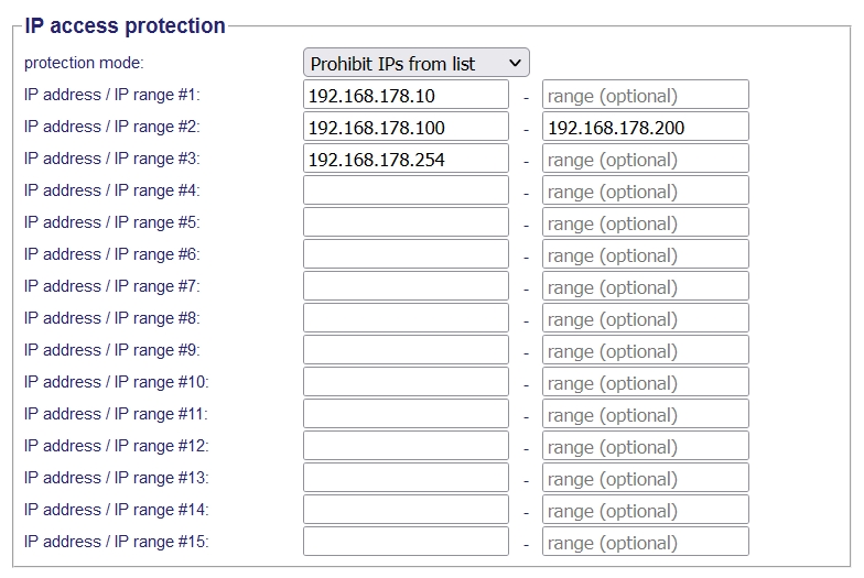 The IP filter is used to determine whether or not the entered IP-addresses or IP-address-ranges may communicate