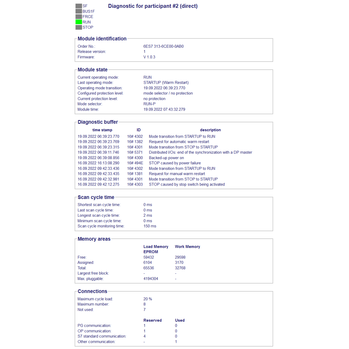 - Display of PLC diagnostic buffer in the WebServer